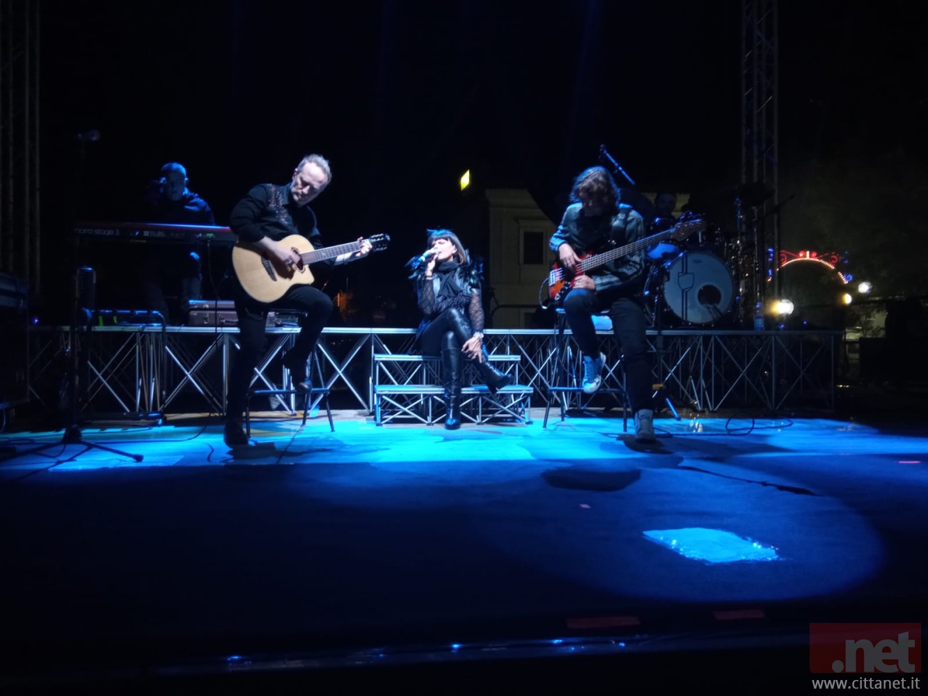 Non sono mancati begli omaggi a Franco Battiato (pregevole la versione acustica di “La Cura”) e Mina. Quattro musicisti di spessore ed esperienza accompagnano stasera l’artista bolognese sul palco: Riccardo Cherubini alle chitarre e tromba, Lino De Rosa Davern al basso, Riccardo Ciaramellari alle tastiere e fisarmonica e Claudio Del Signore alla batteria e percussioni.