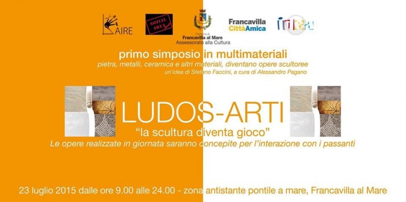 Si terrà giovedì 23 luglio, presso l'area pedonale adiacente il pontile di Francavilla al Mare, il simposio di scultura “Ludos-Arti”, ideato da Stefano Faccini e a cura di Alessandro Pagano e Francesco Todisco, delegato alla cultura per il Comune di Francavilla. Durante l’evento, che ha come sottotitolo “La scultura diventa gioco”, vari artisti della pietra scolpiranno un'opera in pubblico. Successivamente le stesse opere saranno esposte in alcune attività commerciali e messe all'asta. Il ricavato, esclusi la base d’asta e un rimborso per l'artista, verrà devoluto in beneficenza. Questi gli artisti che parteciperanno a “Ludos-Arti”: