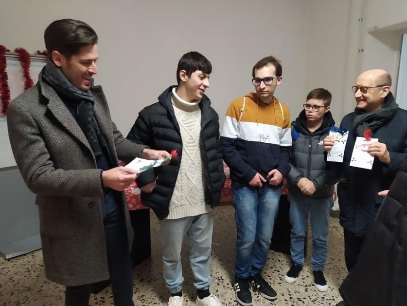 Il sindaco di Chieti, Diego Ferrara, e l’assessore alle Politiche Giovanili, Manuel Pantalone, hanno ricevuto, presso la sede operativa di Erga Omnes a Chieti Scalo, i “doni solidali”, realizzati dai ragazzi con disturbo del neurosviluppo del progetto “Una Chiave”. In rappresentanza del laboratorio “Una Chiave per creare”, erano presenti Antonia, Filippo, Lorenzo e Walter, insieme ad alcuni dei volontari che gestiscono le attività: Antonella Carone, Tommasina Savio e Maria Teresa Sista.