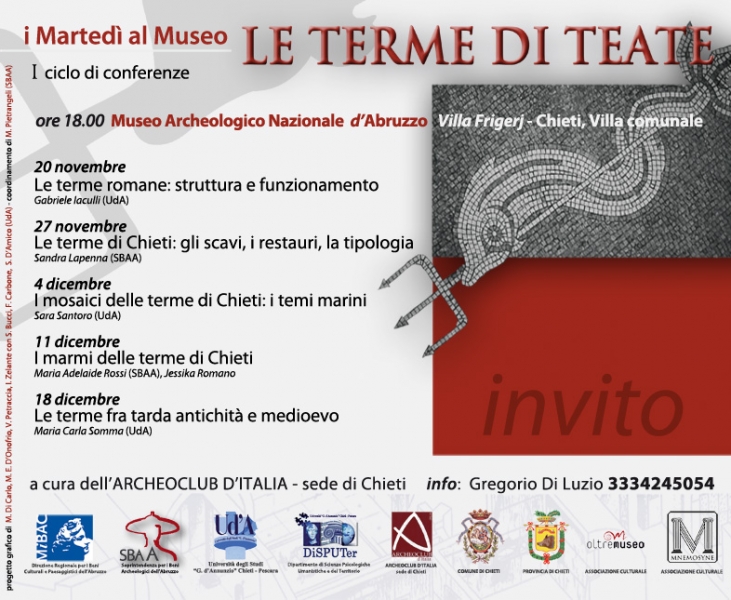 - “Gli scavi, i restauri, la tipologia delle terme di Chieti” (27 novembre, dr.ssa Sandra Lapenna);