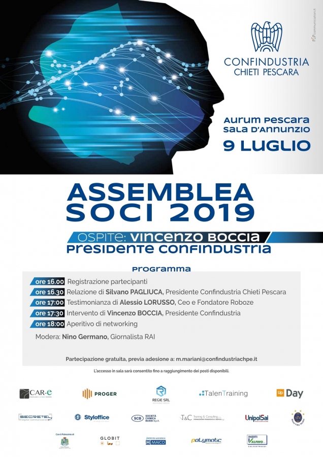 Si terrà martedì 9 luglio alle ore 16, presso l'Aurum di Pescara, l'Assemblea annuale dei soci di Confindustria Chieti Pescara, in seduta pubblica.