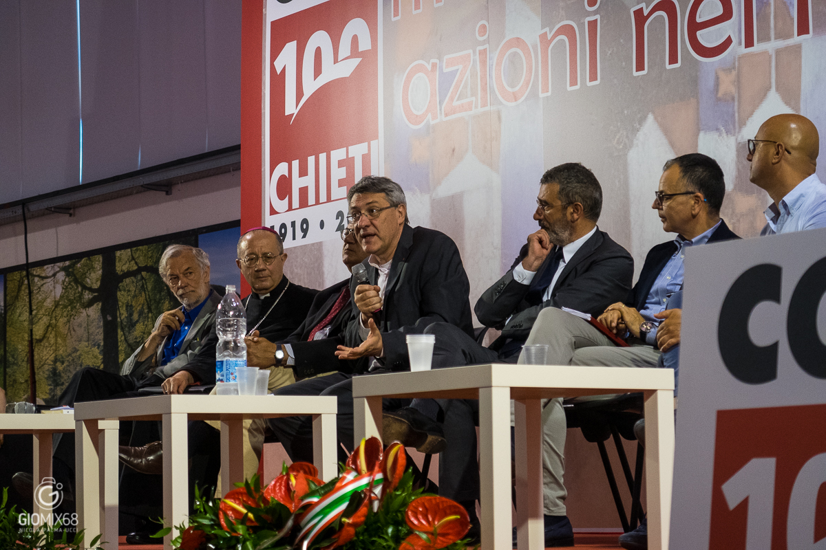 Ghezzi, in particolare, ha ripercorso gli ultimi cento anni della storia del territorio, mentre D'Amico ha analizzato le nuove sfide cui si va incontro, auspicando che l'Abruzzo sia in grado di attrarre investimenti, dando il giusto valore alla ricerca, all'innovazione e al ruolo delle università nel processo di crescita economica. Vinciguerra si è soffermato sull'importanza del fare sistema: in tal senso ha parlato dell'esperienza del polo dell'automotive abruzzese, dove aziende, grandi multinazionali, piccole e medie imprese, istituzioni e università operano insieme, in una logica di sistema, con risultati positivi. Monsignor Forte, nel suo intervento, ha sottolineato l'importanza del lavoro inteso come dignità dell'uomo e, richiamando più volte la Costituzione italiana, si è soffermato su valori, quali la dignità e la solidarietà , su cui la Chiesa è impegnata.