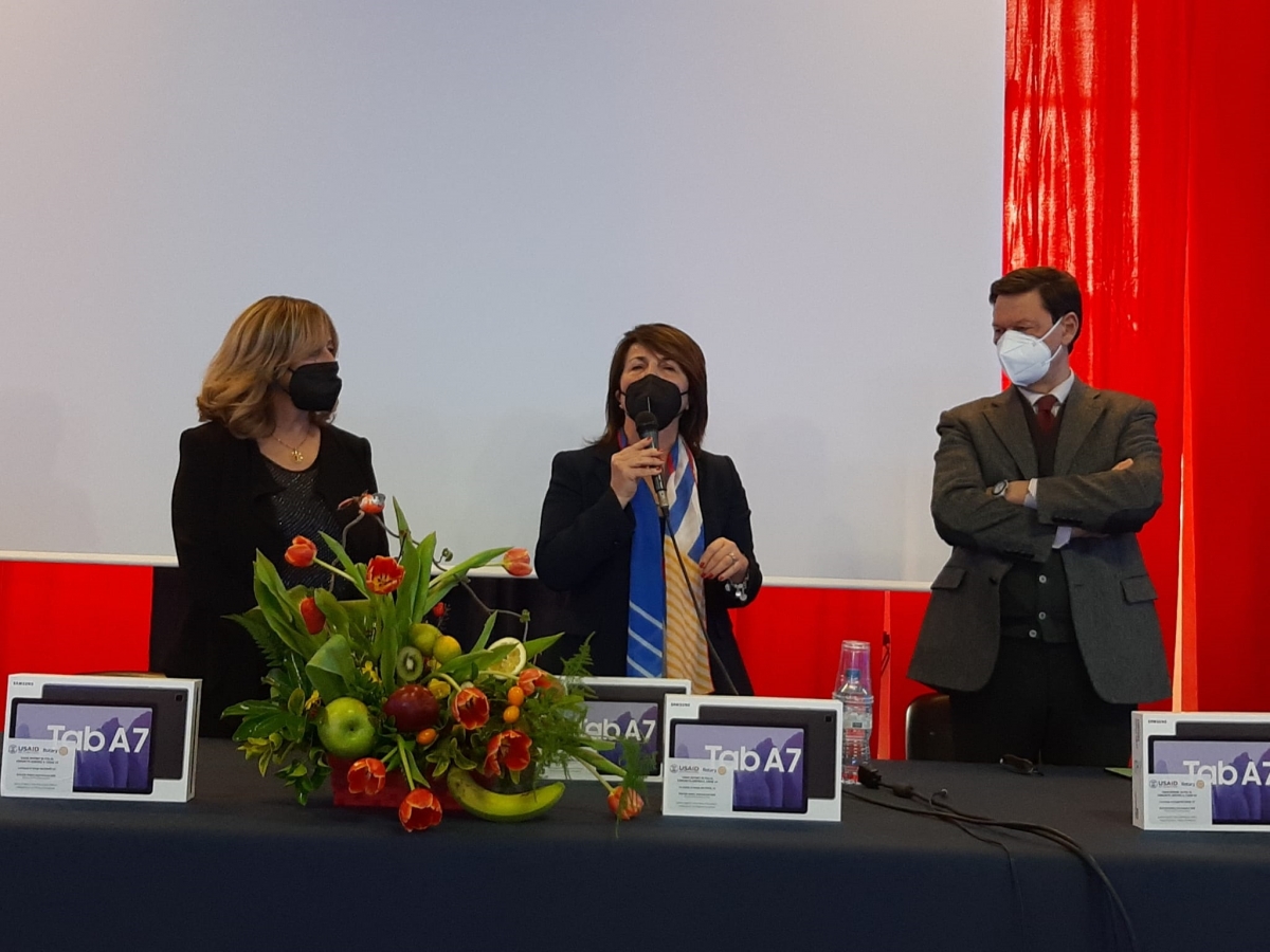 "I ragazzi stanno pagando un prezzo altissimo alla pandemia sotto il profilo dell’apprendimento e delle relazioni. Abbiamo voluto pensare a loro e alle difficoltà delle famiglie nel garantire la didattica a distanza con adeguati strumenti digitali, donando dei tablet, in Abruzzo 155, già in distribuzione”. Queste le parole di Rossella Piccirilli, Governatore del Distretto Rotary 2090 (Abruzzo, Marche, Molise e Umbria) per presentare l’iniziativa messa in campo in collaborazione con il Governo degli Stati Uniti a sostegno del nostro Paese nella lotta contro il Covid-19.