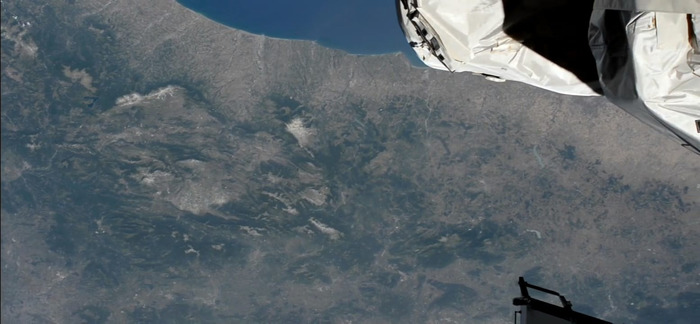 Grazie alla Nasa è possibile monitorare il suo percorso, con due fotocamere installate a bordo. Proprio da una di queste, quella ad alta definizione che inquadra perpendicolarmente la terra, è stato possibile immortalare il momento in cui la Stazione Spaziale ha sorvolato la nostra regione e, complice il cielo completamente sgombro da nuvole, è stato possibile ammirare la costa adriatica, il lago di Campotosto, ma anche il Gran Sasso e la Majella, con le cime ancora innevate.