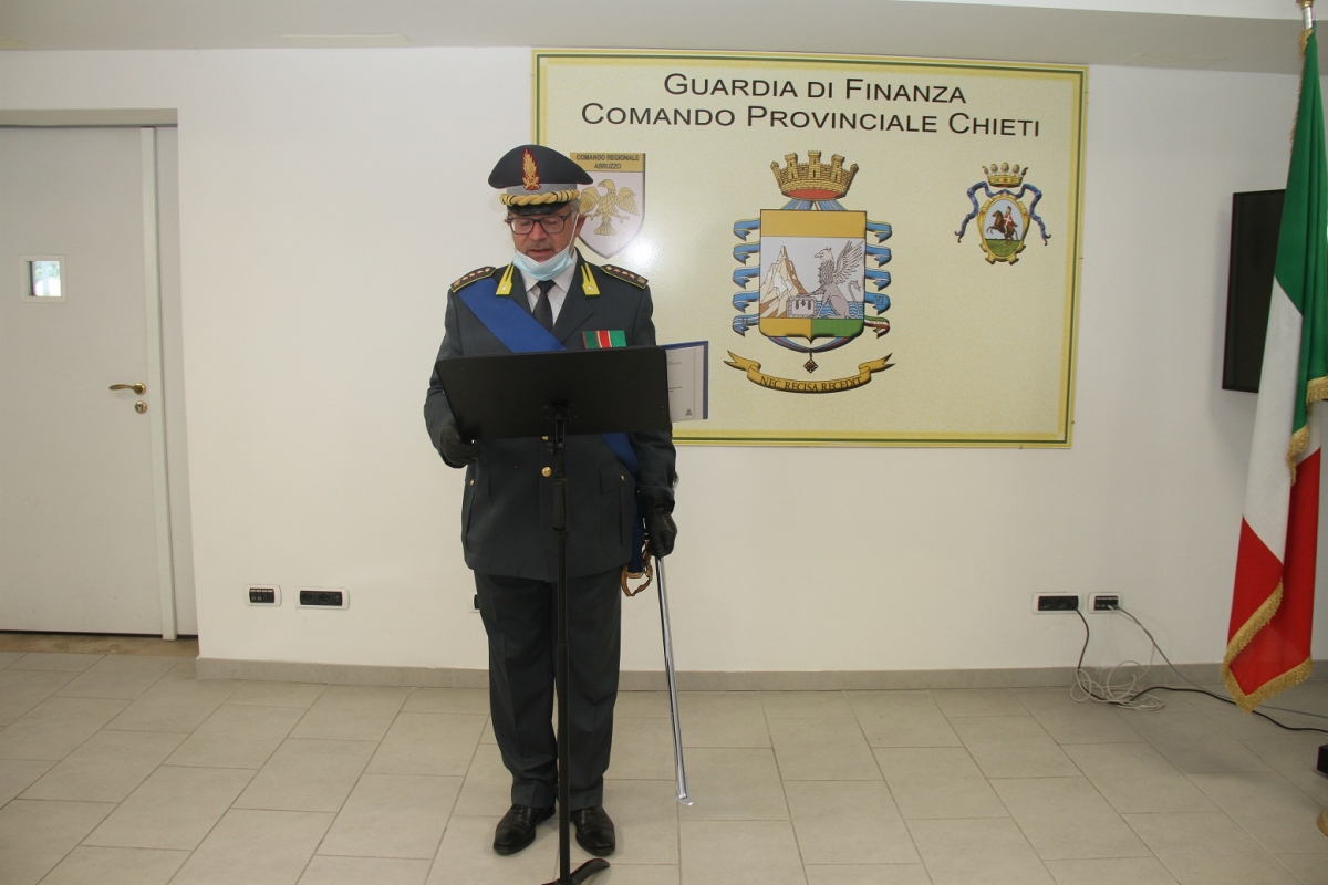 Sono alcuni dei dati dell'attività svolta dalla Guardia di Finanza - nel periodo gennaio 2020-maggio 2021 - resi noti dal colonnello Serafino Fiore, comandante provinciale di Chieti, nel corso della festa per i 247 anni della fondazione del Corpo che si è tenuta nella caserma sede del Comando provinciale di Chieti.