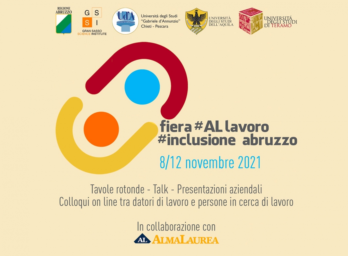 Dall’8 al 12 novembre si terrà la prima Fiera d'Abruzzo per il Lavoro e l’Inclusione Sociale, promossa dal Sistema Universitario e dalla Regione, in programma all'Università di Teramo