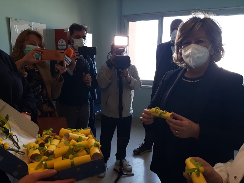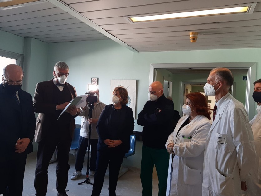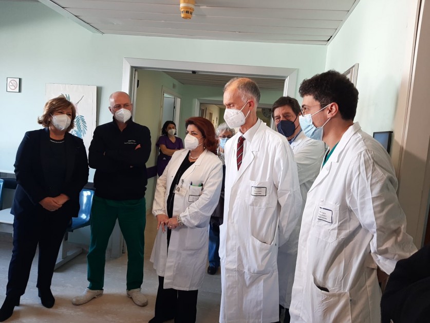 Nuove tecnologie in Ostetricia e Ginecologia. Se in Medicina Nucleare l’Assessore ha formalizzato un impegno destinato a concretizzarsi nell’immediato futuro, in Clinica Ostetrico-Ginecologica è stato utilizzato il tempo al passato rispetto alle promesse mantenute. Il parco tecnologico dell’unità operativa è stato già in gran parte rinnovato, con 5 ecotomografi ginecologici 3D di alta fascia, un laser CO2 e diodi da utilizzare collegato al robot chirurgico, che verrà utilizzato principalmente nella chirurgia fetale. Ai 400 mila euro già spesi andranno aggiungersi, nell’anno in corso, altri 900 mila per l’acquisto di altre attrezzature, tra cui una colonna laparoscopica 4 K e una seconda per isteroscopie, cardiotocografi wireless, letti con annesse culle neonatali che favoriscono il contatto della mamma con il bambino in sicurezza. L’Assessore Verì ha espresso convinto apprezzamento, in particolare, per l’attività di diagnosi prenatale di II livello e assistenza alle gravidanze gemellari difficili svolta dal reparto, che richiama nel 30% dei casi pazienti di altre regioni, mentre Schael ha voluto sottolineare l’impegno solidale dell’équipe del Direttore Marco Liberati che da mesi si rende disponibile a coprire i turni anche a Lanciano.