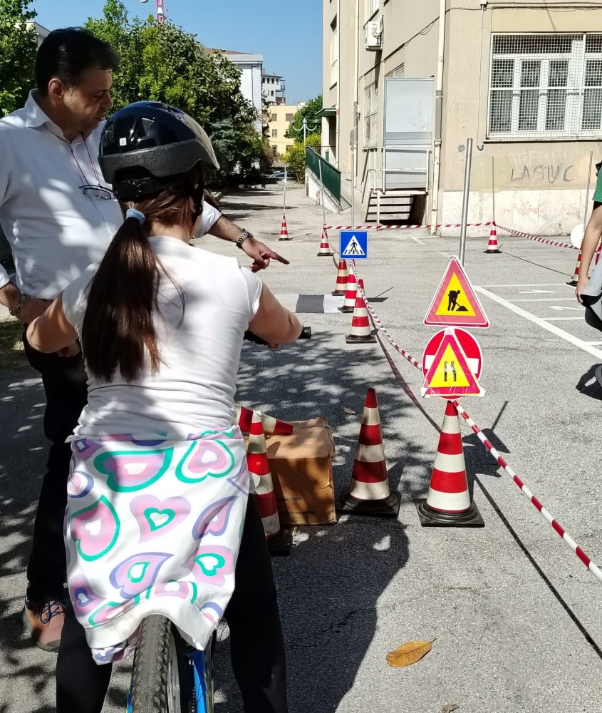 L’Automobile Club Chieti ha allestito anche quest’anno, nel parcheggio della Scuola Secondaria di 1° grado “G. Mezzanotte” di Chieti, un apposito circuito didattico all’aperto in cui gli alunni di quattro classi prime hanno potuto affrontare, in sella alle loro biciclette, alcune situazioni critiche urbane reali, riprodotte con i mini segnali verticali e orizzontali, imparando a rispettare le regole ed adottando comportamenti corretti e sicuri.