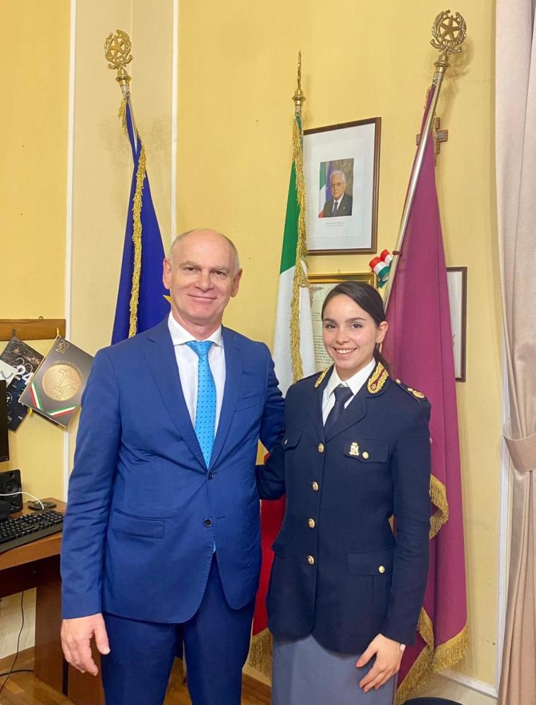 Nella foto Gloria Verzella con il Questore Aurelio Montaruli
