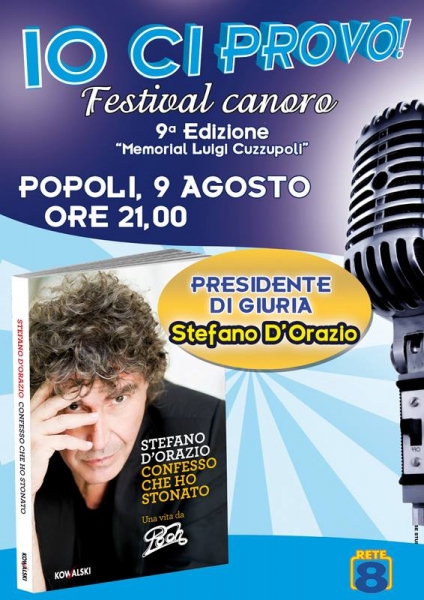 Popoli – Si svolgerà a Popoli Venerdì 9 agosto la 9ª Edizione del Festival Canoro “Io ci provo! Memorial Luigi Cuzzupoli”: presidente di giuria sarà STEFANO D’ORAZIO, ex batterista dei Pooh.