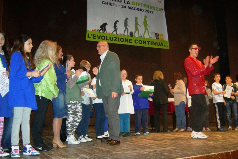Il Sindaco di Chieti, Umberto Di Primio, questa mattina, accompagnato dall’Assessore alla Raccolta Differenziata, Alessandro Bevilacqua, e dall’Assessore alla Pubblica Istruzione, Giuseppe Giampietro, ha partecipato, presso l’Auditorium Supercinema di Chieti, alla cerimonia di premiazione del progetto, promosso dall’Amministrazione Comunale di concerto con l’ATI-CNS Mantini, “Premiamo la Differenza”, rivolto agli alunni delle quinte classi delle scuole primarie cittadine e avente lo scopo di sensibilizzare i giovani studenti alle tematiche e al rispetto della raccolta differenziata.