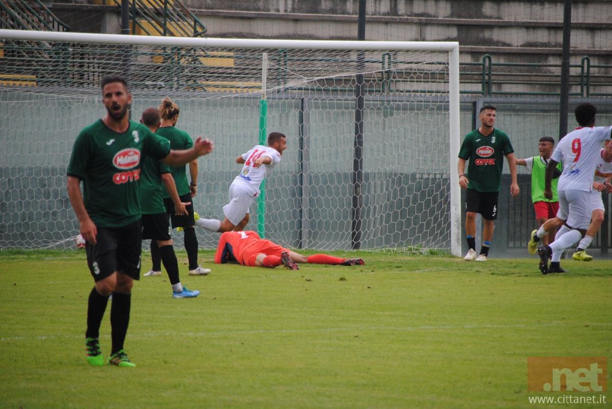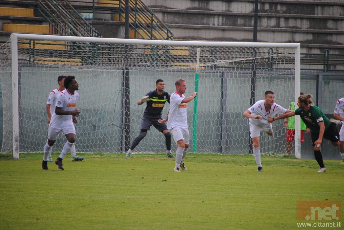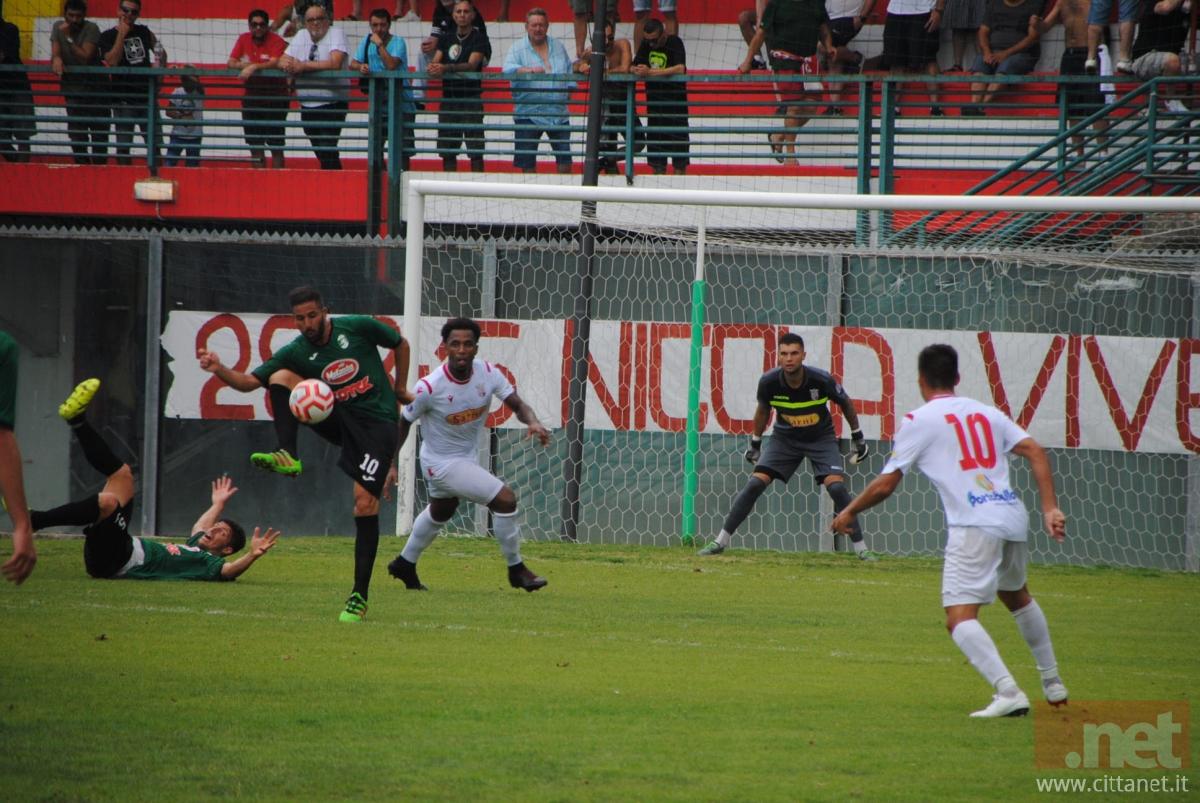 Gara che sembrava in discesa per il Chieti, ma al 25′ un calcio di rigore assegnato dal direttore di gara per fallo su Esposito ed il rosso a Vigliatto complicavano i piani di vittoria. Dal dischetto implacabile l'ex Ribeiro Dos Santos contro un altro ex, il portiere Stefano Camerlengo, e 2-2 siglato sotto la Curva d’Avalos.