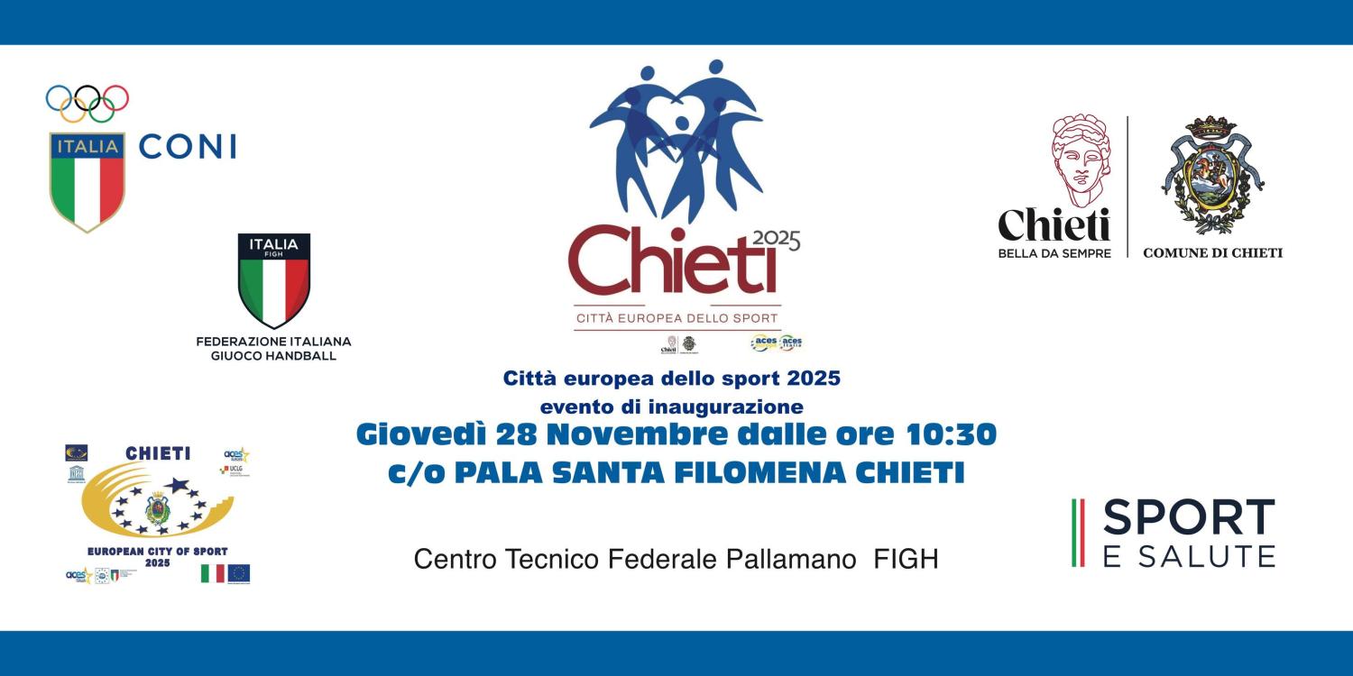 “Si apre uno straordinario anno di sport con tanti eventi che saranno tutti sotto l’egida di Chieti Città Europea dello Sport, un titolo che abbiamo conquistato con il lavoro e la fruibilità di impianti e attività sportiva che storicamente trova casa a Chieti – così l’assessore Manuel Pantalone, presidente del Comitato Chieti Città Europea dello Sport 2024 -. Per l’evento di giovedì abbiamo approntato una scaletta fitta di interventi istituzionali e di relazione, con un ospite importante e autorevole, qual è il presidente nazionale Coni Giovanni Malagò, che aprirà ufficialmente le celebrazioni. Tante le sinergie, a partire da Sport e Salute, la Spa della Presidenza del Consiglio che ci vede partner del rilancio sportivo a Chieti, passando per l’Università d’Annunzio, per il Centro Federale Figh al Pala Santa Filomena che sarà scenario di questa partenza e motore importante di eventi e appuntamenti, che farà una speciale relazione giovedì proprio sullo sport come rilancio del territorio.