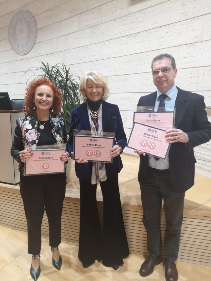 «La 9a edizione dei Bollini rosa, che ha visto la partecipazione di 344 ospedali italiani e il patrocinio di 23 società scientifiche – ha commentato Francesca Merzagora, Presidente Onda - rinnova l’impegno di Onda nella promozione di un approccio gender-oriented all’interno delle strutture ospedaliere riconoscendo l’importanza della sua promozione attraverso servizi e percorsi a misura di donna, in tutte le aree specialistiche. Qualità e appropriatezza delle prestazioni erogate dal Servizio sanitario nazionale, elementi indispensabili per assicurare uniformità di accesso alle prestazioni, sono evidenziate dagli ospedali con i Bollini rosa che vengono valutati e premiati mettendo in luce le specialità di maggior impatto epidemiologico nell’ambito della salute femminile, i servizi e i percorsi dedicati nonché l’accoglienza e l’accompagnamento alle donne. I 335 ospedali premiati costituiscono una rete di scambio di esperienze e di prassi virtuose, un canale di divulgazione scientifica per promuovere l’aggiornamento dei medici e degli operatori sanitari e per la popolazione rappresentano l’opportunità di poter scegliere il luogo di cura più idoneo alle proprie necessità, nonché di fruire di servizi gratuiti in occasione di giornate dedicate a specifiche patologie, con l’obiettivo di sensibilizzare e avvicinare a diagnosi e cure appropriate».