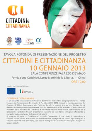 Giovedì 10 gennaio dalle ore 10, presso la Sala Conferenze di Palazzo de' Mayo a Chieti, si terrà la tavola rotonda di presentazione del progetto "Cittadini e cittadinanza".